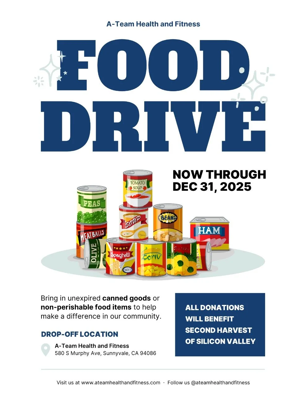 In both 2024 and 2025, we partnered with Second Harvest Food Bank to collect non-perishable canned goods like soups, vegetables, fruits, proteins (tuna, chicken), and beans. With the help of the A-Team coaches and community, we were able to donate an abundance of food for members of our local community facing food insecurity right on time for the holidays.
